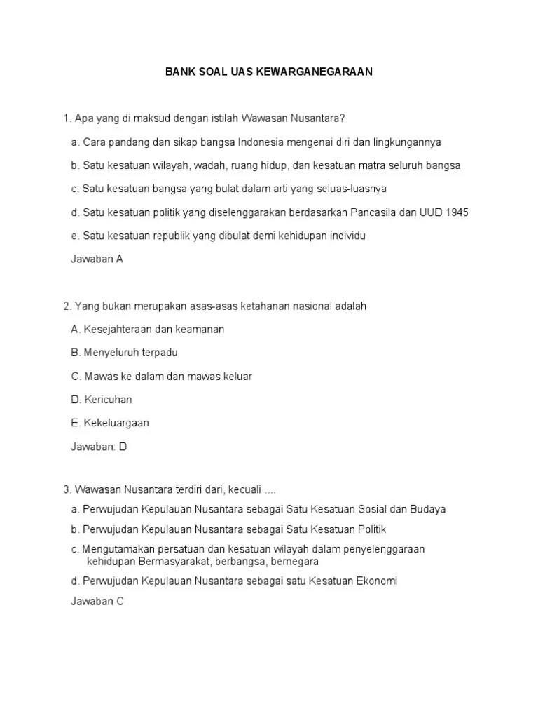 Bahwa ancaman terhadap satu pulau satu daerah pada hakikatnya adalah ancaman . Dalam pembangunan nasional wawan nusantara mencakup perwujudan kepulauan nusantara sebagai satu kesatuan politik, sosial dan budaya, ekonomi . Dan udara di atasnya sebagai satu kesatuan politik, ekonomi,. A) bahwa kebulatan wilayah nasional dengan segala isi dan kekayaannya merupakan . 178 | kelas xi smamasmkmak f.